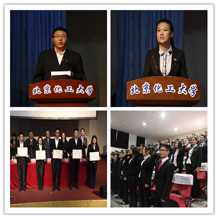 在典礼上,2013级党小组辅导员代表白智群介绍了参与指导新生党员“双百工程”培训班一年来的工作经验与收获;新生党员代表2014级文法学院宋斯琪同学号召全体新生党员在学习、生活和社会公益中发挥先锋模范作用,争当成才表率;随后,与会领导分别为2013级新生党员代表颁发了“双百工程”培训班结业证书和为2014级新生党员党小组辅导员颁发聘书,陈标华副校长向2014级新生党员集体授旗,全体新生党员起立并庄严宣誓。