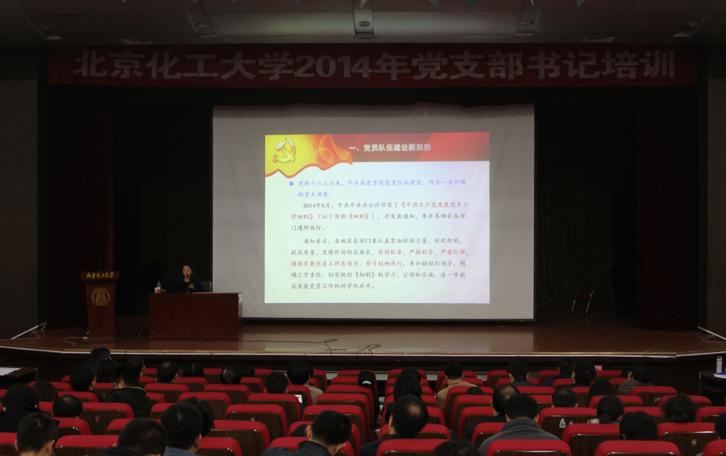为全面学习贯彻中央关于党员队伍建设的新精神、新要求、新部署,贯彻落实新修订的《中国共产党发展党员工作细则》(以下简称《细则》),进一步做好新形势下发展党员工作, 10月25日,我校在科学会堂举办以“规范党员发展工作,提高党员发展质量”为主题的2014年秋季党支部书记专题培训班。各学院分党委书记、副书记、党务干事、组织员、教工及学生党支部书记参加本次培训。