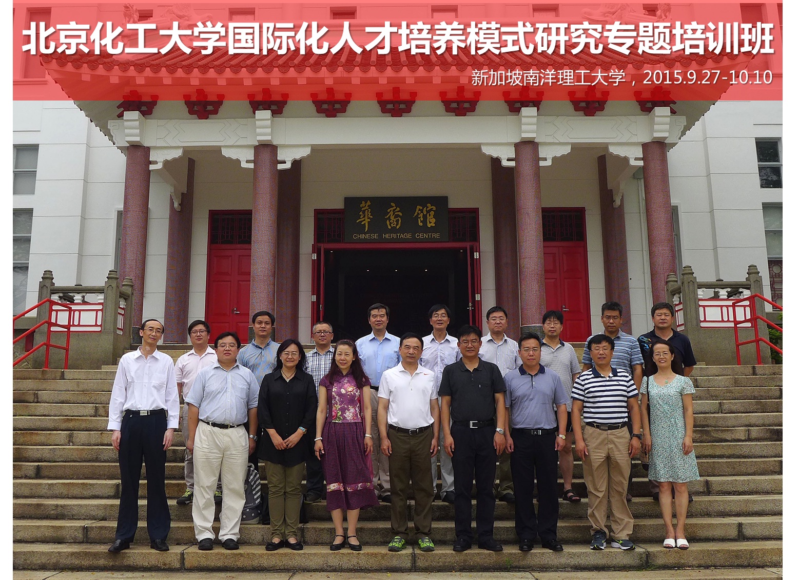 9月27日至10月10日,北京化工大学国际化人才培养模式研究专题培训班在新加坡南洋理工大学举行,本次培训由校党委副书记兼副校长任新钢带队,成员由学院和校机关的18名领导干部和学科带头人组成。
